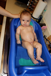 This is Paislee's first bath without her baby net in it! She looks a little confused huh? Ha! She tried to slide down that little hump in the middle (designed to keep her up) the whole time--she wants to lay down! So glad I have a little water baby! Bath time is her favorite part of the day--no bedtime without it!